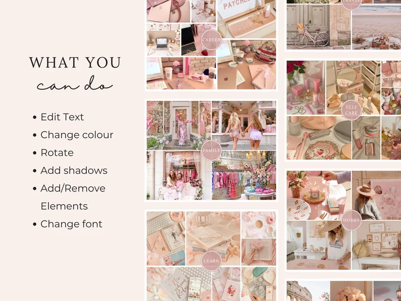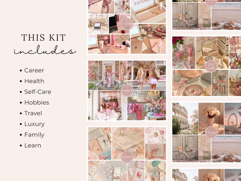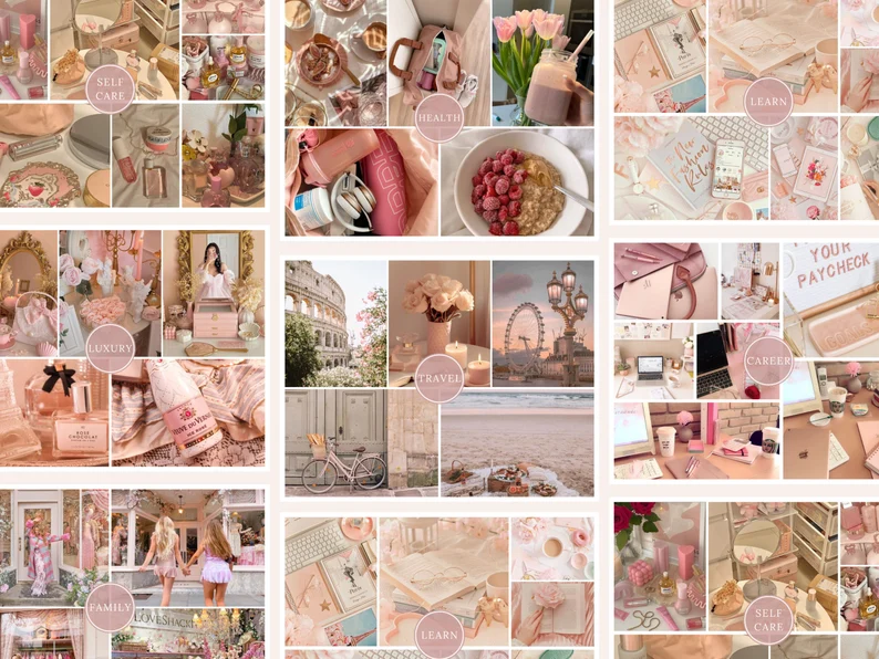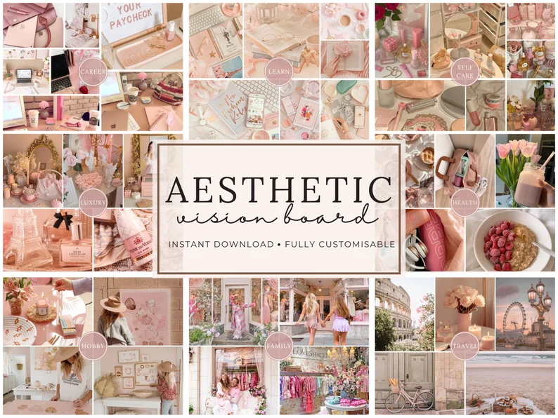 Vision Board Template for Manifesting your Dream Life Canva, Mood Board Template, Motivational Board, Picture Board, Goal Board